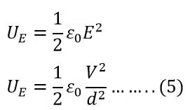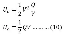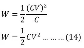 By placing the value of UE in equation 2, the total energy stored in a capacitor is;