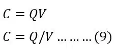 Putting the value of capacitance C from equation 7 in equation 6, we get;