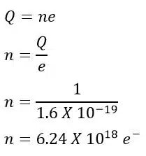In 1 coulomb of charge, the number of electrons (n) is