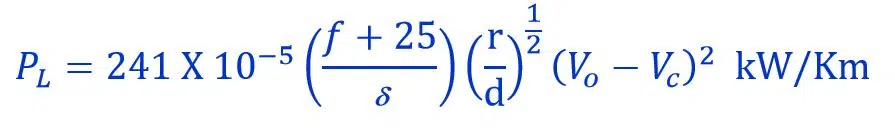 Peek’s Formula is applicable in case of visual corona. This formula usually gives inaccurate results when the losses are low, and V0/VC is less than 1.8