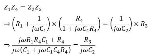 Now, let us derive the expression of the unknown capacitance for the given bridge circuit.